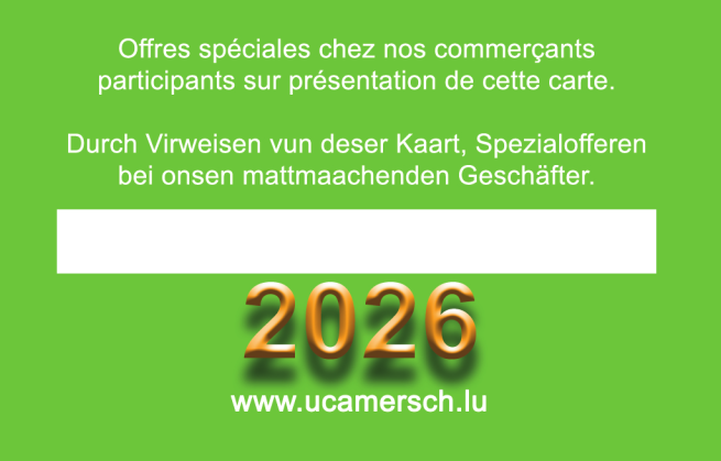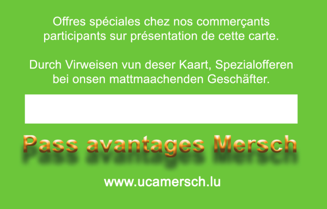 Vous pouvez l’acquérir auprès de l’Union Commerciale de Mersch ou au bureau d’Information du Shopping Topaze.
